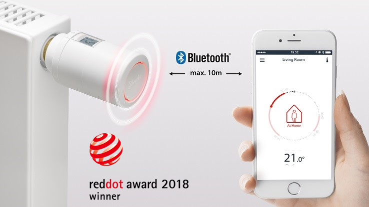 Nová zdokonalená termostatická hlavice nabízí nadčasový a elegantní design a ovládání přes telefon pomocí Bluetooth.