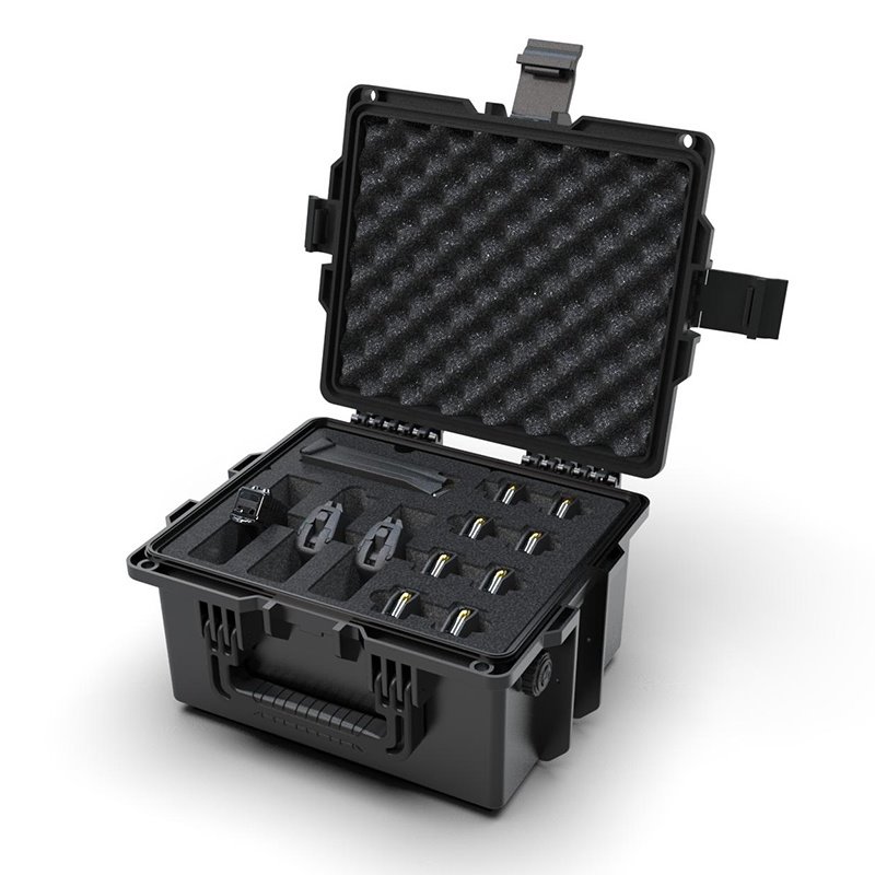 • Předřezaná pěnová vložka pojme 5 pistolí a 10 zásobníků (2x na každou pistoli)