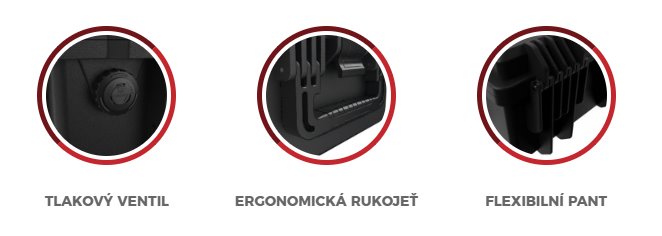 • Skládací rukojeti na boku a vpředu pro přenášení