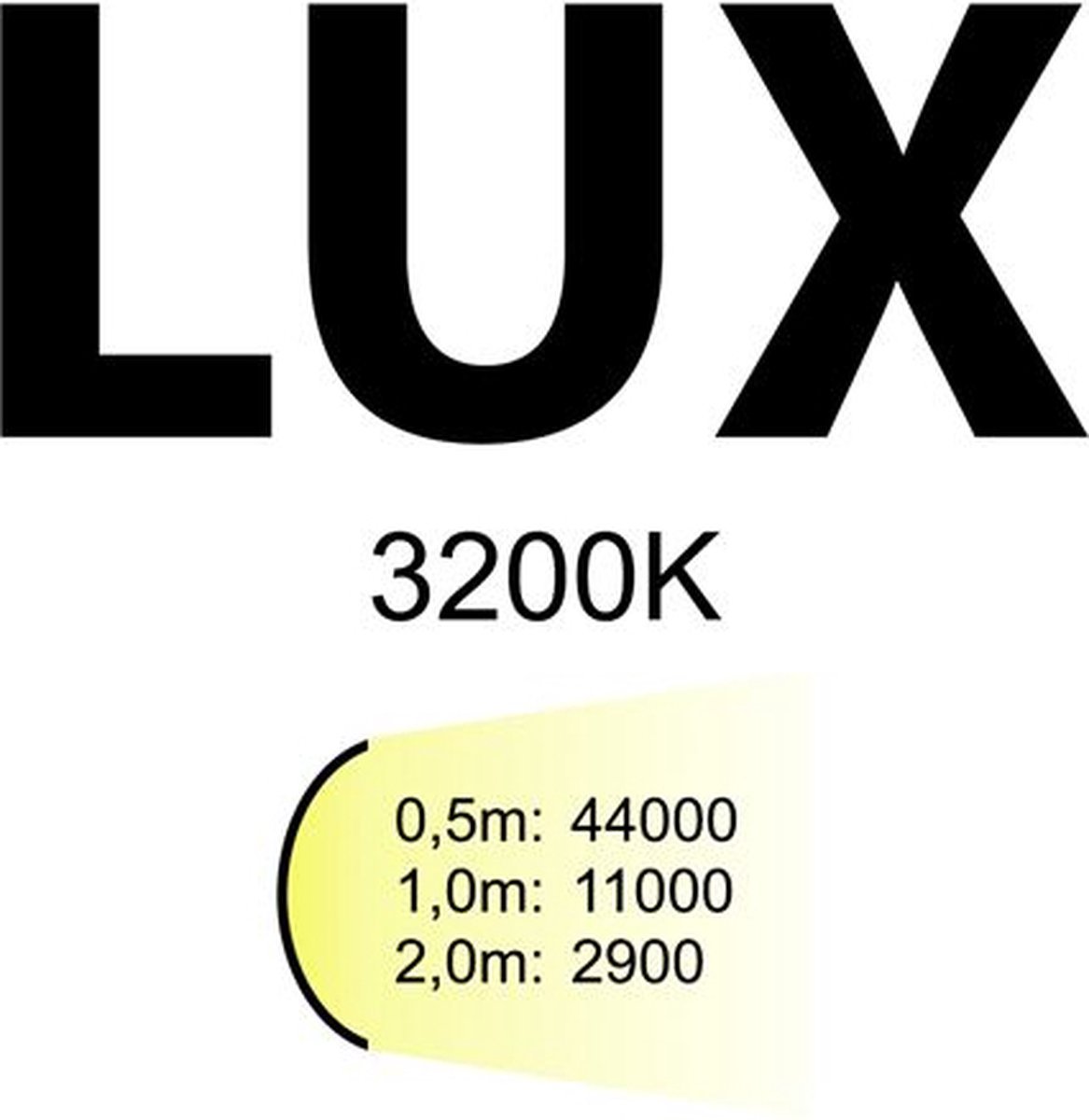 > Halogenová žárovka má výkon 1000 W a barevnou teplotu 3200 K.