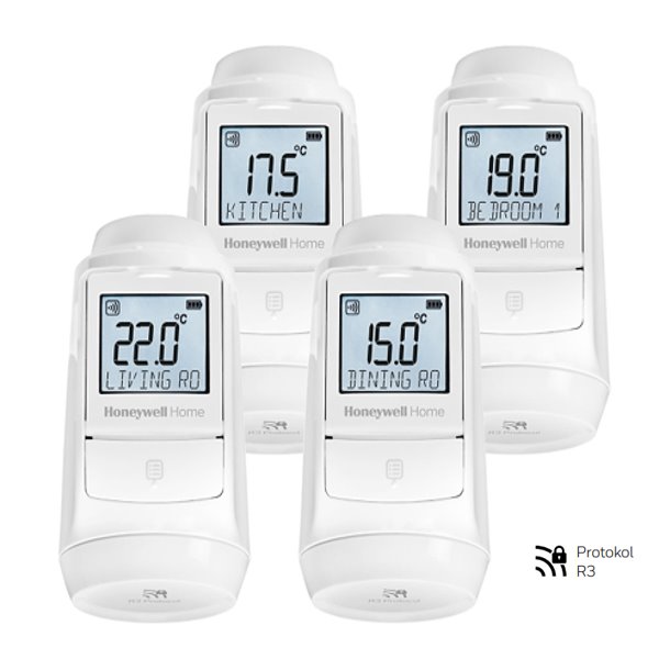 Výhodná sada hlavic Honeywell Home EVO-TRV (HR93). Honeywell Home EVO-TRV (HR93) je nástupce hlavic HR92 splňující poslední bezpečnostní požadavky na bezdrátovou komunikaci (R3 protokol) v souladu s požadavky EU.