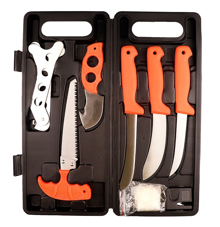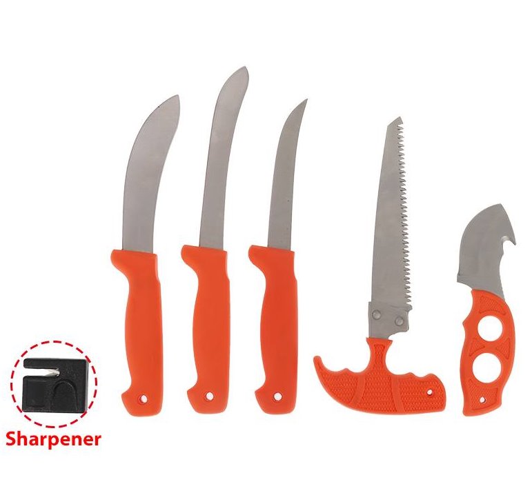 4 ks nožů (stahovací, vykosťovací, filetovací, vyvrhovacís trhacím hákem)