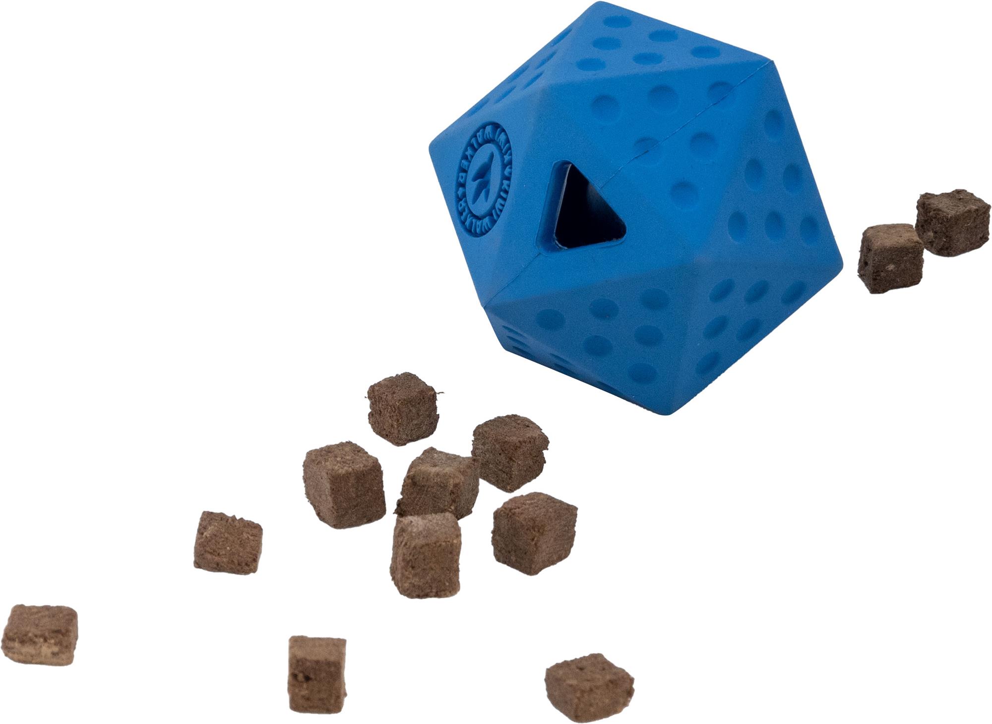 Svým originálním geometrickým tvarem zajistí dlouhé hodiny zábavy, hračka se nepředvídatelně odráží a tak udrží vašeho čtyřnohého mazlíčka ve střehu a otvory zajistí, aby naplněné pamlsky postupně vypadávaly.