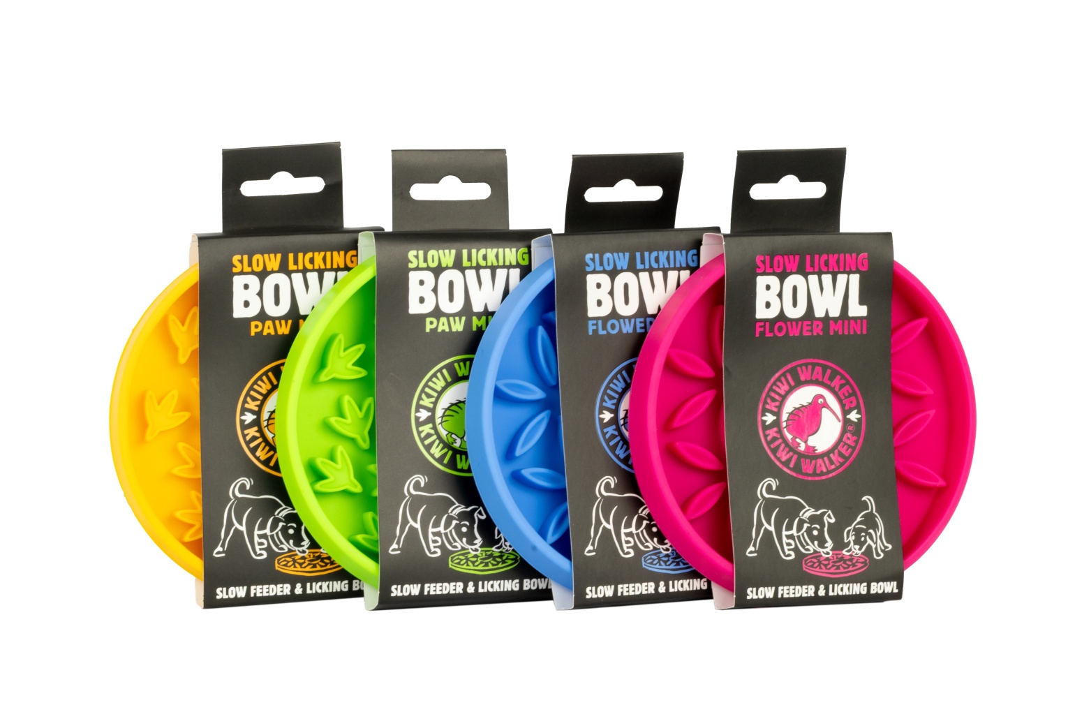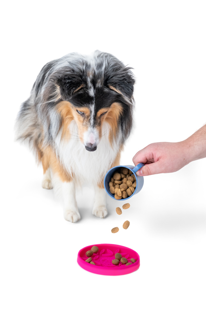 Produkt je dostupný ve čtyřech barvách a ve dvou vzorech PAW a FLOWER, ideální pro každodenní enrichment.