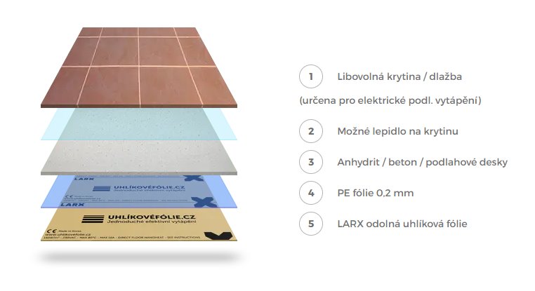 Spolehlivá ochrana a izolace pro všechny LARX uhlíkové fólie, chrání před vlhkostí a zajišťuje bezpečný provoz.