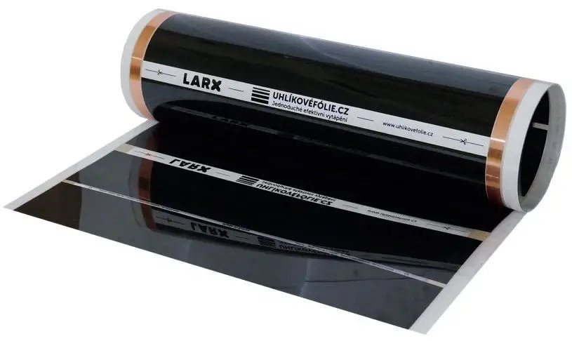LARX uhlíková fólie, 100 W/m2, šířka 0,5 m. Výkon 100 W/m2, suchá instalace, extrémně tenká. LARX uhlíková fólie má precizní konstrukci s minimální tloušťkou pro zanedbatelné navýšení konstrukce...