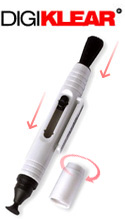 Návod k použití: Vysunovacím štětcem odstraňte prach a jiné nečistoty z objektivu/filtru.