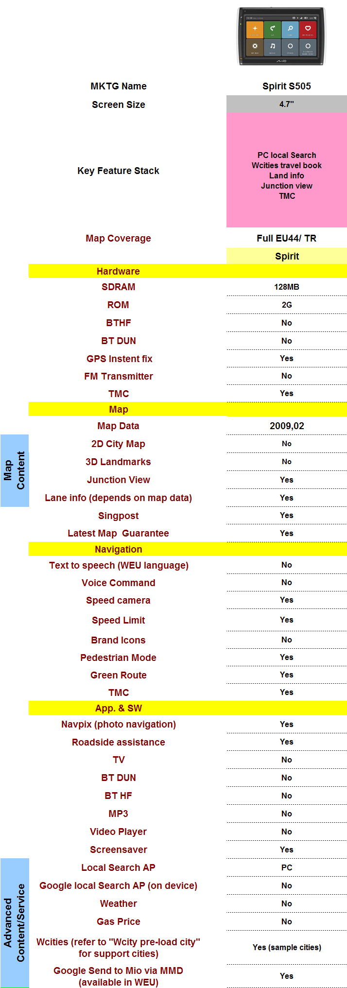 | Název výrobku | MIO Moov S505u Spirit GPS navigace, LCD 4,7", TMC, mapy Evropy |