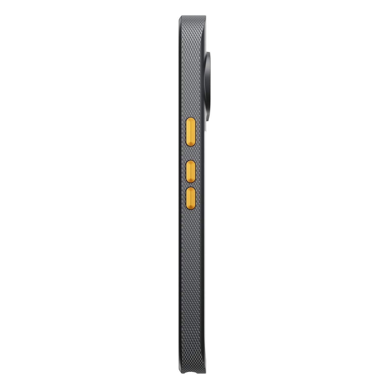 Tělo je vyrobeno z lehkého recyklovaného polykarbonátu s hladkým povrchem odolným proti poškrábání a nečistotám a velmi snadným čištěním. Vroubkované hrany a široká, precizně obráběná hliníková tlačítka zajišťují pohodlné ovládání – i v rukavicích. Uvnitř se nachází jemná výstelka z mikrovlákna Clarino™, která chrání telefon před oděrkami. Odnímatelná gumová krytka USB-C portu brání vniknutí vody a prachu v náročném prostředí a při outdoorových aktivitách.