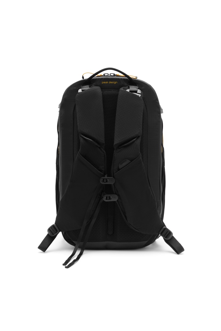 Velký zadní přístupový panel usnadňuje balení a zároveň poskytuje ideální formát pro přenášení foto a video techniky v kombinaci s Peak Design Camera Cubes*, které lze bezpečně upevnit uvnitř batohu. 3 velké externí kapsy Flex Pockets™ poskytují snadný přístup k velkým předmětům které chcete mít po ruce (lahve na vodu, turistické hole, bundy, stativy), přičemž si vždy zachovávají čistý vzhled a nepůsobí neorganizovaně. Externí popruhy Cord Hook™ a elastické úchyty Gear Loops nabízejí nekonečné možnosti pro připevnění věcí k vnějšku batohu, zatímco všudypřítomný popruh Cord Rails™ poskytuje upevňovací body ze všech stran batohu. Můžeš dokonce připevnit Peak Design Ultralight Packing Cubes* pro modulární externí úložný prostor.
