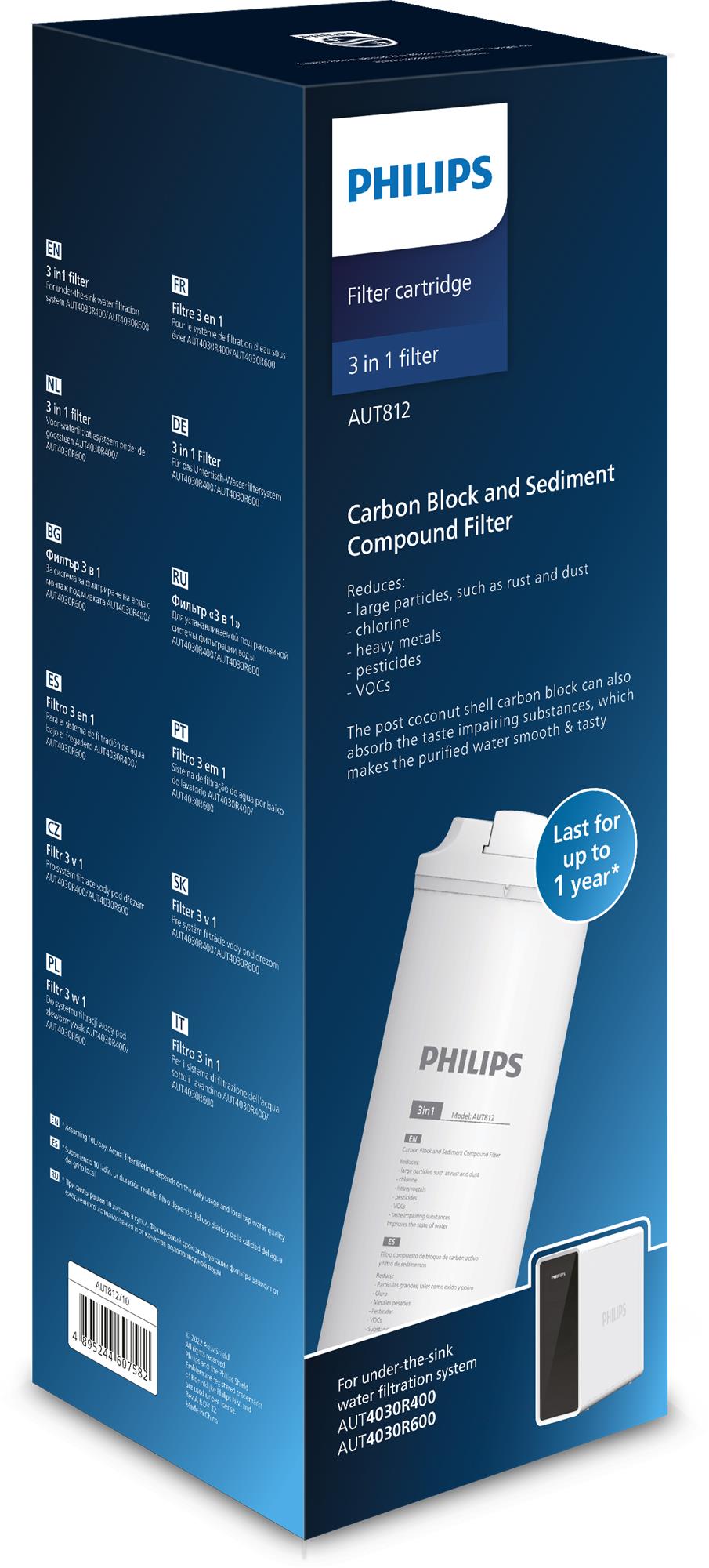 | Název výrobku | Philips náhradní filtr AUT870R600, reverzní osmóza, odstraní částice >0,0001 mikronu (pro AUT4030R600) |