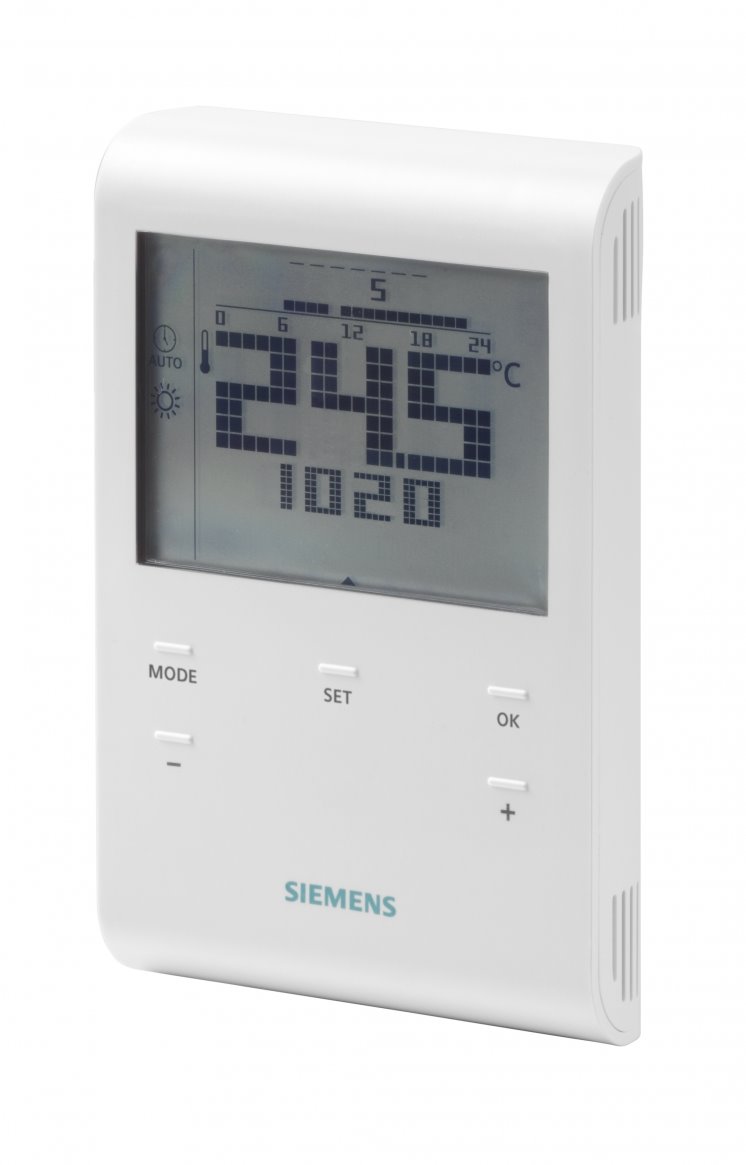Název výrobku | Siemens termostat RDE100.1, programovatelný, digitální, prostorový, drátový |