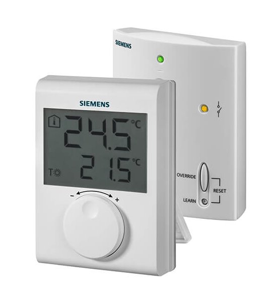 Hledáte jednoduchý přístroj k regulaci teploty ve svém bytě nebo domě? Optimálním řešením pro vás bude prostorový termostat Siemens RDH100RF/SET. Požadovanou teplotu si snadno nastavíte ovládacím kolečkem. Na velkém přehledném displeji se vám zobrazí jak požadovaná, tak aktuální teplota v místnosti. Přístroj sestává ze dvou částí, prostorového termostatu a spínací jednotky, které mezi sebou komunikují po rádiových vlnách. Díky bezdrátové komunikaci není třeba instalovat kabely. Termostat tak poskytuje větší variabilitu umístění v prostoru.