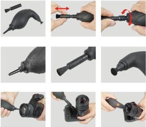 Je to multifunkční nástroj (3v1). Silný proud vzduchu z patentovaného balónku očistí čočky od prachu, zasouvací štětečk na objektiv odstraní nečistoty a speciální sametový čistič s netoxickými chemickými sloučeninami a dávkovačem grafitu pomáhé udržovat stabilní kvalitu bez vysušování.